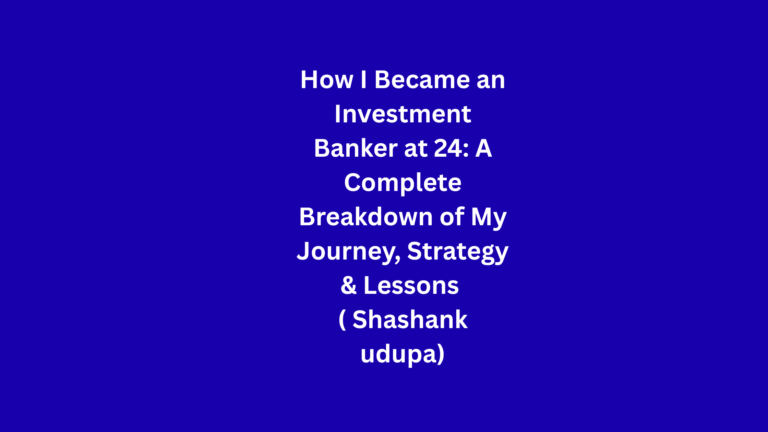 Finance articles How I Became an Investment Banker at 24: A Complete Breakdown of My Journey, Strategy & Lessons ( Shashank udupa) Fianance speakFebruary 24, 2026March 8, 20260 Becoming an investment banker is often associated with top-tier degrees, elite institutions, and near-perfect academic records. My journey was the…