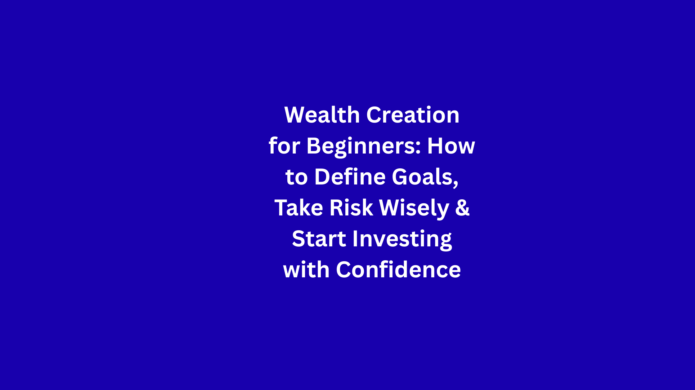 If you are just beginning your wealth creation journey: